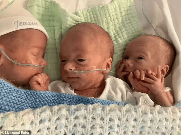 据报道,来自柴郡现年34岁的吉娜·杜德尼在几秒钟内通过剖腹产生下了这三个男婴:吉米、詹森和贾克森。三个小家伙不仅是同卵三胞胎,而且共享一个胎盘。