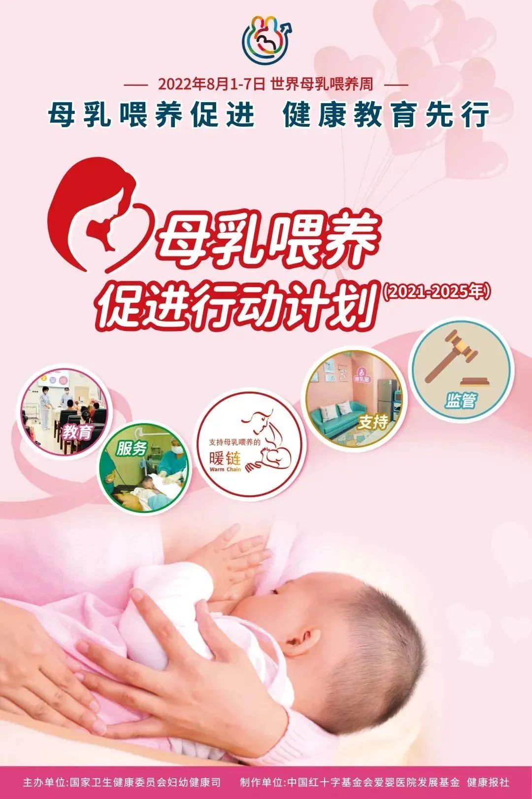 世界卫生组织与联合国儿童基金会给全球母亲的建议:出生后的第一小时内开始母乳喂养;出生至6个月内纯母乳喂养(不必要喂水);6个月之后添加适当辅食,持续母乳喂养至2岁或2岁以上。
