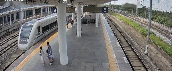 ▲车站工作人员将孕妇搀扶至站台。视频截图