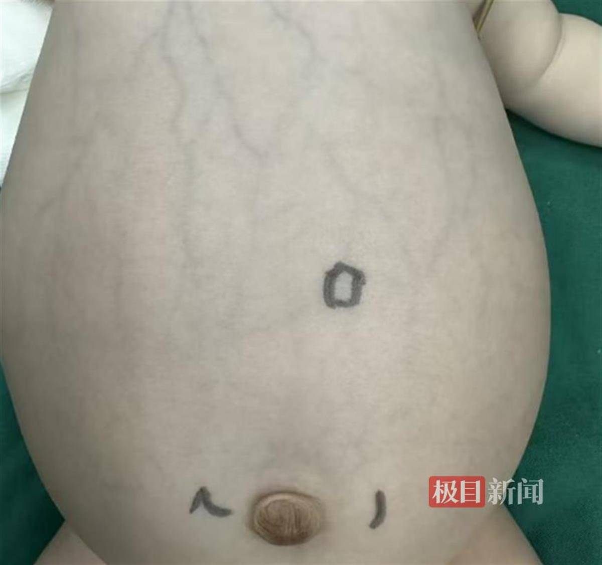 牛牛(化名)的肚子圆滚滚的,肚子上还有“青筋”